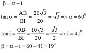 - b) Góc β hợp bởi phương của tia tới với tia khúc xạ là: